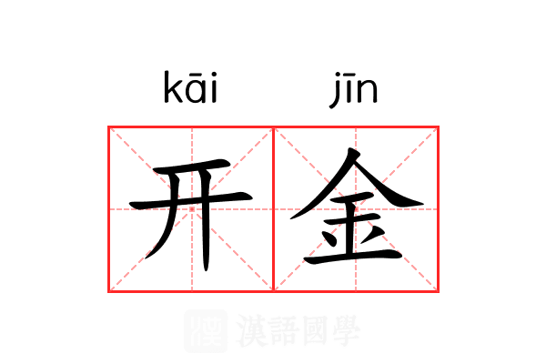 开金的意思是:①.主要成分为黄金的合成金属。因纯金太软,制品容易变形,常掺加其他金属配炼合金 。常用的开金为金与银或铜的合金。②.表示合金中纯金含量的用语。开为英语 karat的音译。纯金是二十四开金,十八开金表示二十四两合金中含有十八两的黄金。也作「K金」。