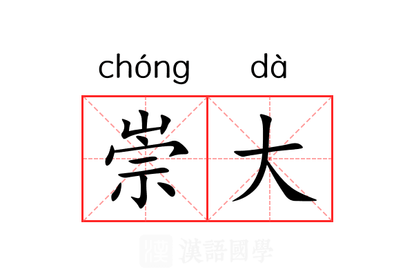 崇大的意思是:①.宏大;高大。②.尊崇光大。