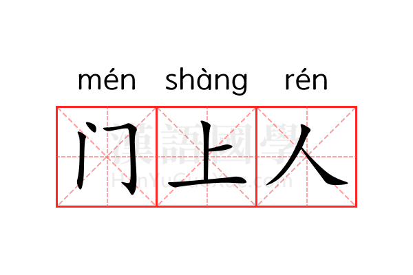 门上人的意思是:守门人。元·张寿卿元·无名氏也作「门里人」、「门上的」。
