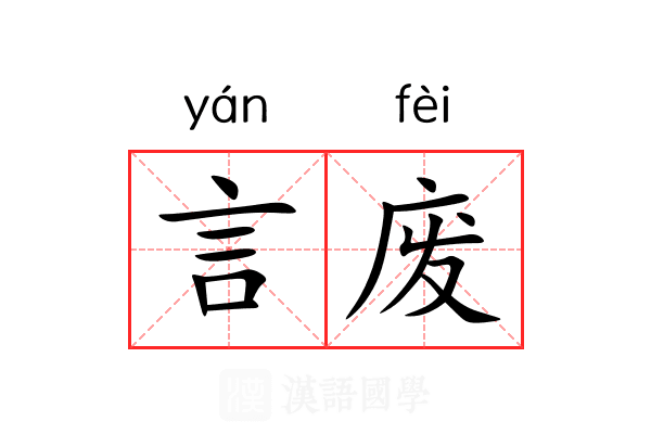 言废的意思是:说的话不被采纳。语出《论语·卫灵公》:“君子不以言举人,不以人废言。”