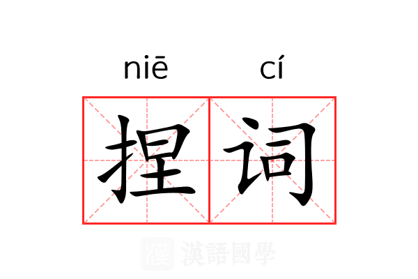 引《红楼梦》第八六回:“今尔远来,并非目睹,何得捏词妄控?”黄钺 《陇右光复记·反正巅末》:“赵 处消息灵便,之 兰州,不时发电,捏词架诬,致 鉞 屡受中央詰责。”