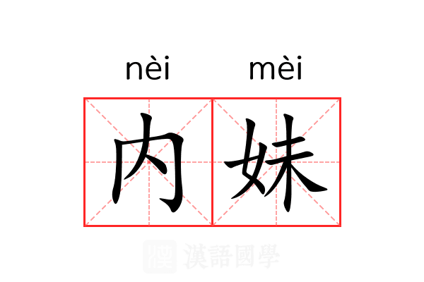 内妹,妻子的妹妹或舅舅的女儿,出处汉语大词典、《晋书卷三十八列传第八》。