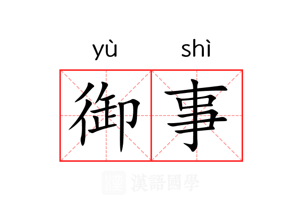 拼音 yù 部首 彳 总笔画 12御 [ yù ] 1. 驾驶车马。 如 御车。御者。 2. 封建社会指上级对下级的治理,统治。 如 “百官御事”。御下。御众。 3. 对帝王所作所为及所用物的敬称。 如 御用。御览。御旨。御赐。御驾亲征。 4. 抵挡。 如 防御。御敌。御寒。 [更多解释]