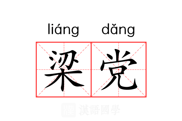 拼音 liáng 部首 木 总笔画 11梁 [ liáng ] 1. 架在墙上或柱子上支撑房顶的横木,泛指水平方向的长条形承重构件。 如 房梁。栋梁。梁上君子(指窃贼)。 2. 桥。 如 桥梁。津梁(渡口和桥梁,借指学习的门径)。 3. 器物、身体或其他物体上中间高起的部分。 如 鼻梁。山梁。车梁。 4. 中国战国时期国名,魏国于公元前361年迁都大梁(今河南省开封市)后,改称“梁”。 5. 中国朝代名(a.南朝之一;b.五代之一)。 6. 姓。 [更多解释]