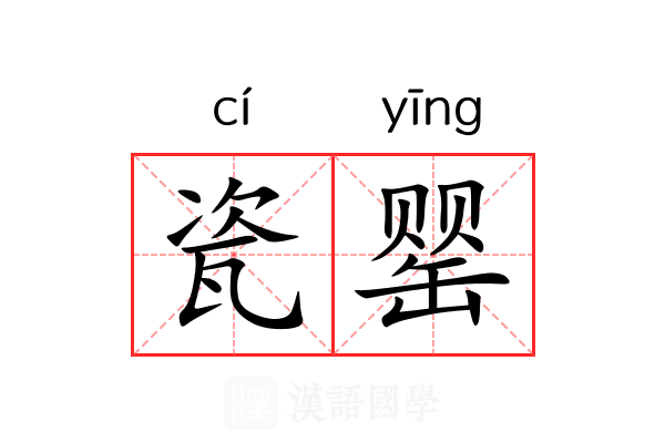 瓷 [ cí ] 1. 用高岭土烧成的一种质料,所做器物比陶器细致而坚硬。 如 陶瓷。瓷瓶。瓷壶。瓷碗。瓷器。瓷砖。 [更多解释]