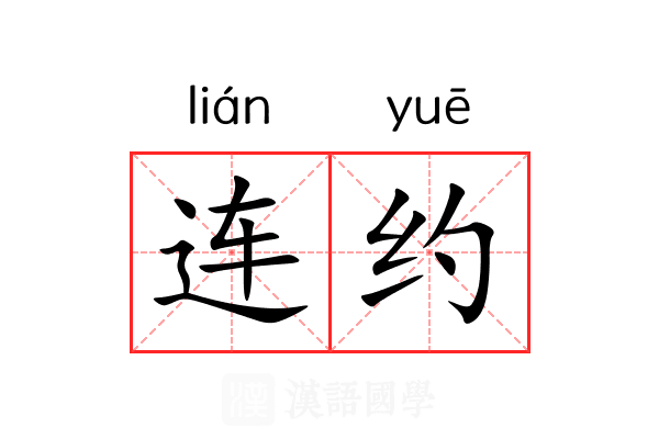拼音 yuē,yāo 部首 纟 总笔画 6约 [ yuē ] 1. 绳子。 2. 拘束,限制。 如 约束。约法。制约。约定俗成。 3. 共同议定的要遵守的条款。 如 立约。条约。契约。 4. 事先说定。 如 约见。约会。 5. 邀请。 如 约请。约集。 6. 节俭。 如 节约。俭约。 7. 简要,简单。 如 由博返约。简约。 8. 大略。 如 约计。约莫。约略。 9. 算术上指用公因数去除分子和分母使分数简化。 如 约分。 约 [ yāo ] 1. 用秤称。 如 约约。约一下。 [更多解释]
