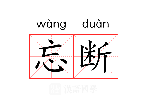 忘断的拼音是:wàng duàn点击 图标播放忘断的发音。