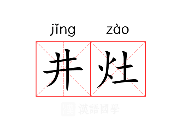 井灶,读音是jǐng zào,是一个汉语词汇,解释为1. 井与灶,亦借指家园、故居;2. 四川 、 云南、天津等地煎制井盐的工场。