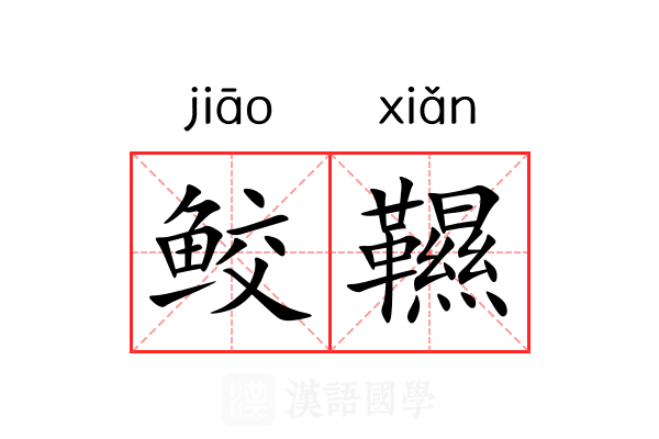 鲛韅的拼音是:jiāo xiăn点击 图标播放鲛韅的发音。