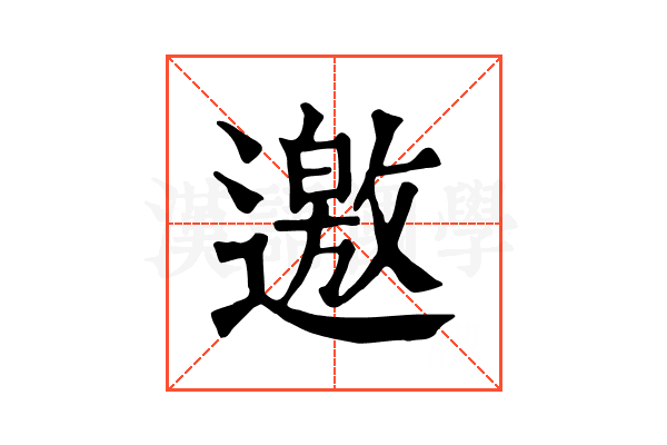 〔邀〕字造字法是形声。从辵,敫声。本义是迎候。