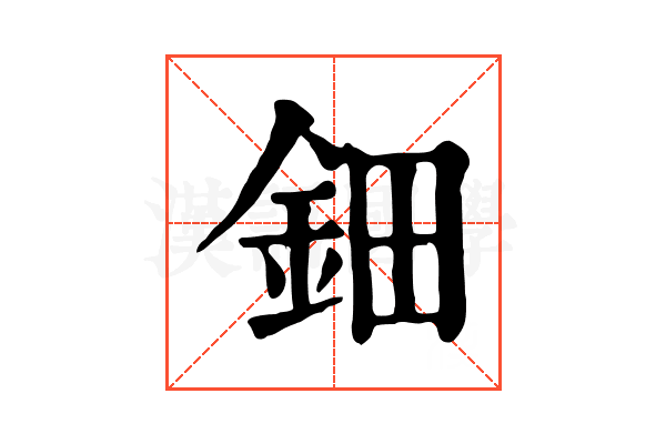 〔鈿〕字拼音是diàn,左右结构,可拆字为釒、田。