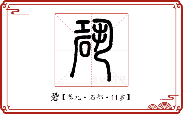 水邊石。从石𢀜聲。《春秋傳》曰:「闕䂬之甲。」