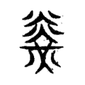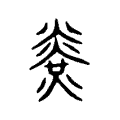 光,明亮。字形采用“火”作边旁,像火把在人的上方,光明的意思。