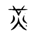 甲骨文從人跽坐,首上頂戴火炬形,強調照明、照遠。在六書中屬於異文會意。戰國文字改從人,篆文改從儿。隸書則改從人或從儿,又從火的偏旁形變,已失火形。
