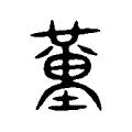 附注段玉裁注:「从黃者,黃土多黏也。會意。」按:甲骨文、金文像人在火上之形。