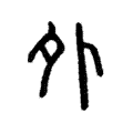 甲骨文「外」與「卜」同形,當與卜問有關。金文則從月、從卜,「月」或作「夕」,金文中「月」、「夕」同意。「夕」為黃昏,表示夜晚,所以「夕」、「卜」是指夜晚卜問。戰國之後,取從夕、從卜的字形而不再改變。《說文》中又收有古文「」,與篆文無別,只是筆勢稍作變化而已。在六書中屬於異文會意。