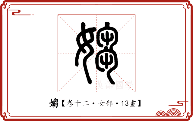 婦人妊身也。从女芻聲。《周書》曰:「至于媰婦。」