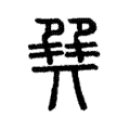 段注《汗𥳑》、《古文四聲韵》載此體各乖異。未詳宜何從也。竊疑此篆字當作籒。字之誤也。古文下从幵。幵亦具意也。籒文緐重。則从幵从幵而又从丌。《古文四聲韵》作巽。葢不誤。小篆則省幵作巺。後人𣜩字則从籒變之作巽。《說文》仿𣜩爲之。非也。