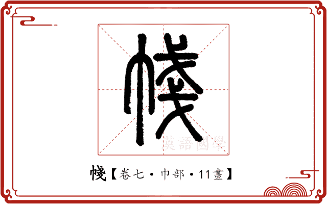帬也。一曰帗也。一曰婦人脅巾也。從巾戔聲。讀若椒榝之榝。