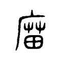 庙,尊敬祖先的样子。字形采用“广”作边旁,采用“朝”作声旁。,这是古文写法的“庙”字。