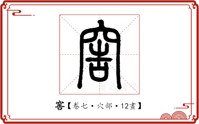 窖,人工挖凿的地下储藏物品的洞穴。字形采用“穴”作边旁,采用“告”作声旁。