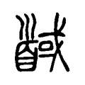 附注《說文新證》:「甲骨文『馘』字,為軍戰斷敵人之首,金文加聲符『或』作『馘』,《說文》或體承此;其後篆形从耳,或因軍制改取敵人之耳。」