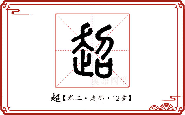 超,跳跃。字形采用“走”作边旁,采用“召”作声旁。