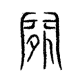 間的初文。金文作,由「門」、「月」二字構成。從門,示門中見月之義。從月,示月從門中見之義。會二字得門隙之義。篆文承自金文第二例。隸書、楷書承自篆文而定體。在六書中屬於異文會意。規範字作闲。