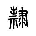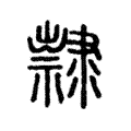 附注按:《高奴權》、《睡虎地簡》、《石門頌》、《韓仁銘》右邊皆從又從米,不從隸。桂馥義證:「本書㱁或作歀,馥謂𨾀亦隸之或體,當別有古文脫去。《一切經音義》三:『𣜩,附箸也。字從米從𠭥聲。古者𣜩人擇米以供祭祀,故從米也。』又卷一:『隷,從米𠭥聲。𠭥字從又從祟。』《九經字樣》:『案《周禮》:女子入于舂稾,男子入于罪𣜩。𣜩字故從又持米,從柰聲。又象人手也。經典相承作隷已久,不可改正。』馥案:此二說謂隸、𨾀皆從米。唐本當如此,但不知何以屬《隶部》。」