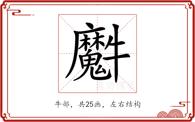 〔𤜘〕字是左右结构,可拆字为“魔、牛”。