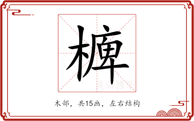 纠错〔㯅〕字拼音是(pí),部首是木部,总笔画是15画。