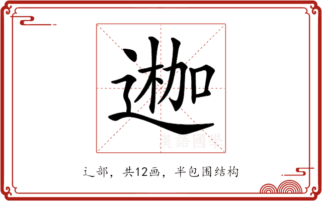 〔𨔣〕字是多音字,拼音是(jiā、jià),部首是辶部,总笔画是12画。