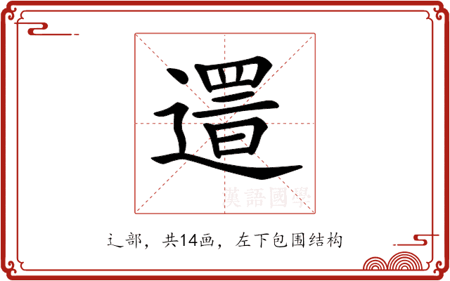 〔𨖞〕字部首是辶部,总笔画是14画。
