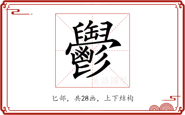 〔𩰪〕字是上下结构,可拆字为“𦥑、缶、冖、鬯、彡”。