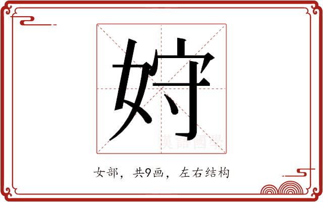 𫰦,位于中日韩统一表意文字扩展区E,Unihan编码U+2BC26,读音是(shǒu),女部,共9画,左右结构。