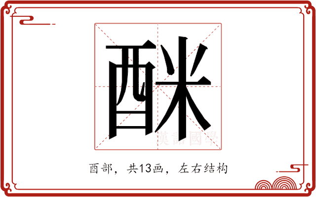 〔𮠩〕字部首是酉部,总笔画是13画。